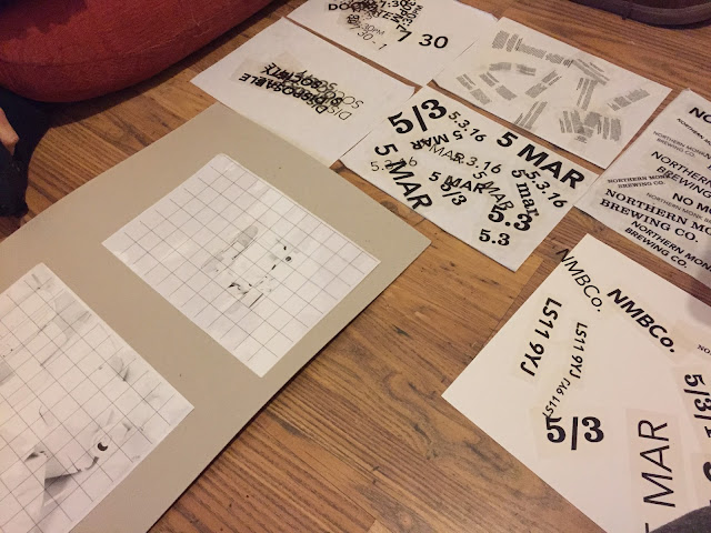 To experiment with placement of text me and Dan took it upon ourselves to do some physical tests using different sizes and styles of the relevant information. We need to include the date, time, place, and a brief description of the exhibition.